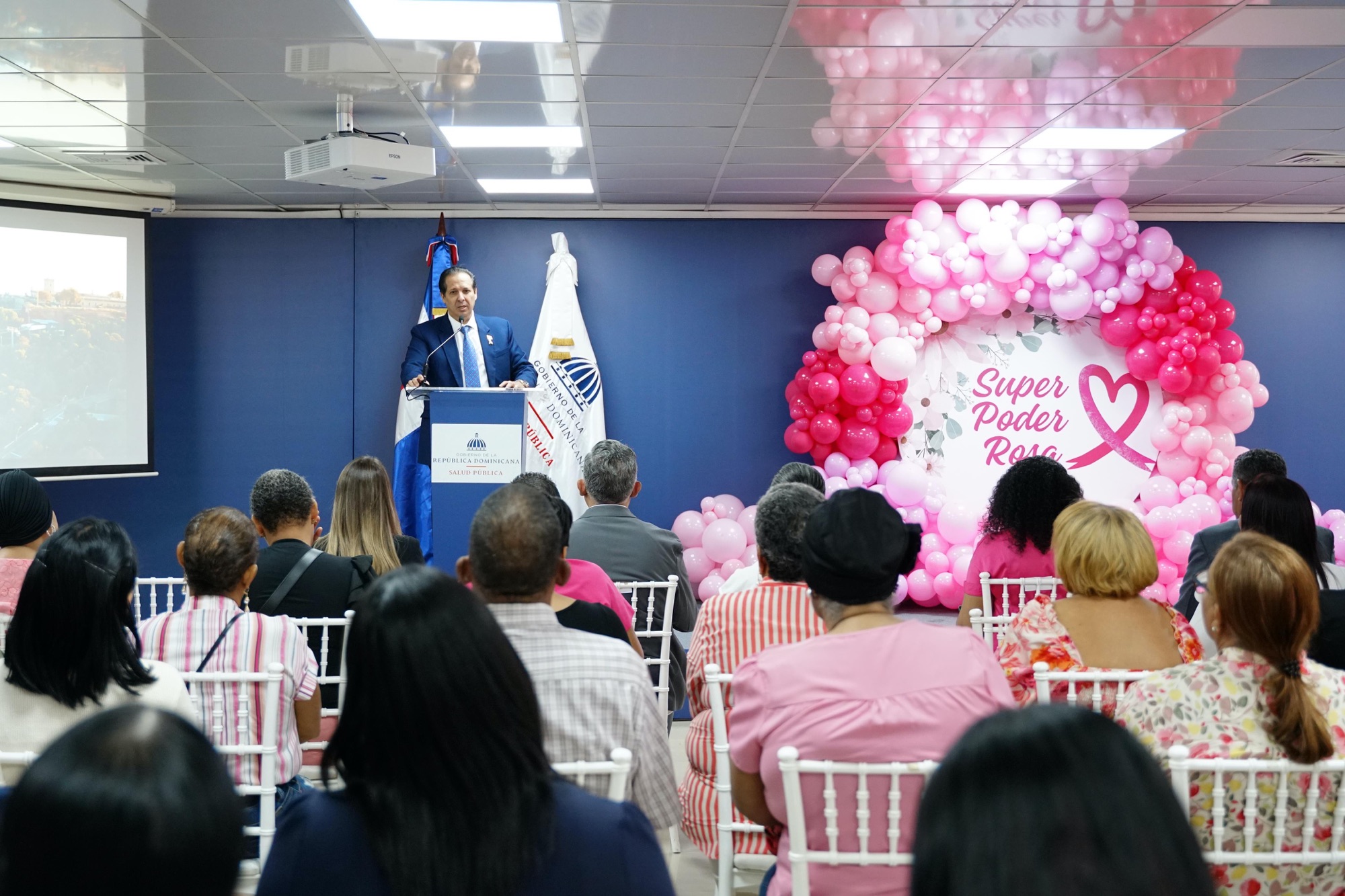 Santo Domingo. – Durante la actividad “Súper Poder Rosa» organizada por la Dirección de Acceso a Medicamentos de Alto Costo (Damac), para mujeres beneficiarias de ese programa, que padecen cáncer de mama, el ministro de Salud, Víctor Atallah reiteró a las mujeres la importancia de realizarse el autoexamen, como uno de los aspectos que influyen para detectar de manera oportuna y prevenir la enfermedad.