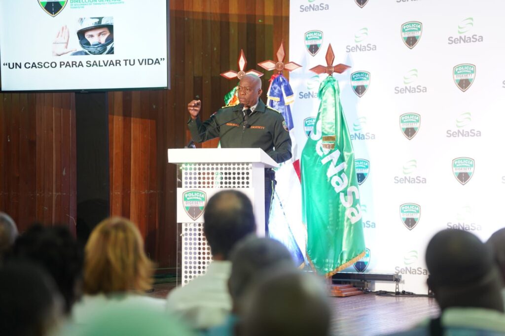 San Cristobal.-La Dirección General de Seguridad de Tránsito y Transporte Terrestre (DIGESETT) y el Seguro Nacional de Salud (SENASA) llevaron a la provincia de San Cristóbal charla de seguridad vial, cascos protectores y afiliación en servicios de salud para los motociclistas de la comunidad.