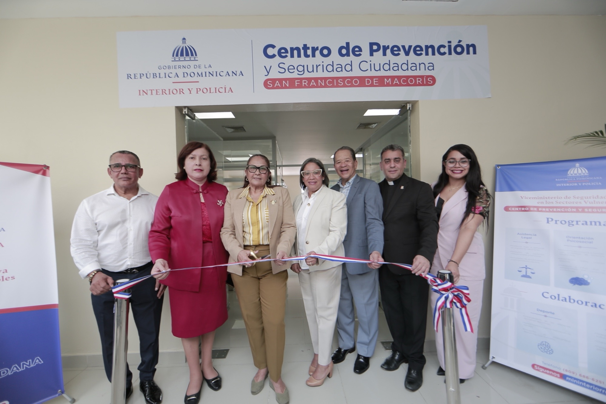 Asistieron a la inauguración la viceministra de Seguridad Preventiva en Gobiernos Provinciales, Ángela Jáquez; Ana Xiomara Cortés, gobernadora provincial; Esmarlin Rodríguez, fiscal titular; Isaac García, rector la Universidad Católica Nordestana; Misael Amparo, párroco de la catedral Santa Ana, quien bendijo la obra.