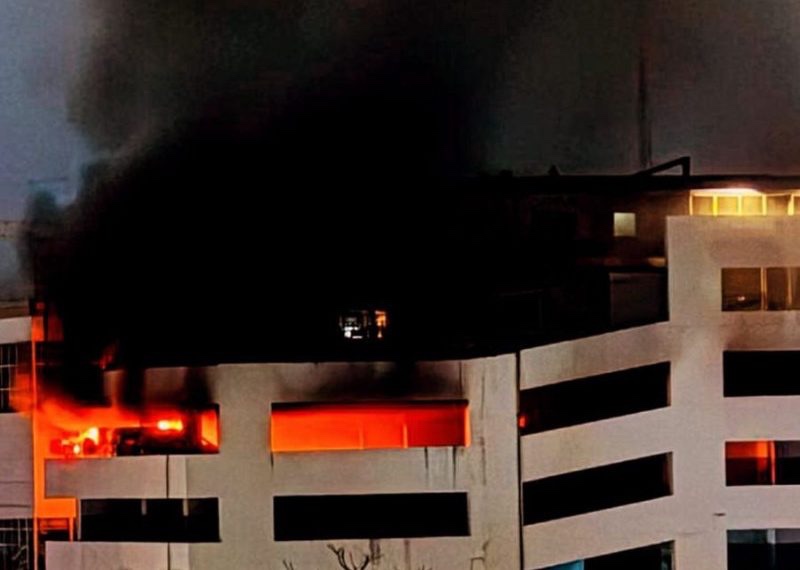 Portada » Se registra incendio en un edificio de parqueos en la calle Paseo de Los Locutores