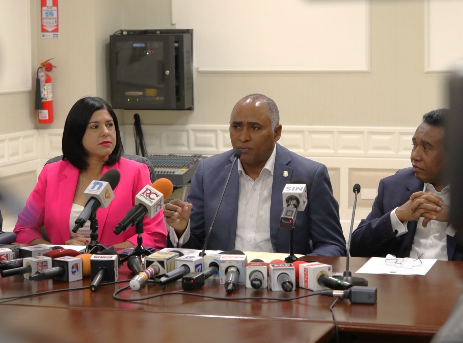 En la rueda de presenta, Julito Fulcar, presidente de la comisión especial para escoger los miembros de la JCE, se hizo acompañar de los senadores María Mercedes Ortiz, Félix Bautista, Aracelis Villanueva, Daniel Rivera y Pedro Catrain, integrantes de la misma.
