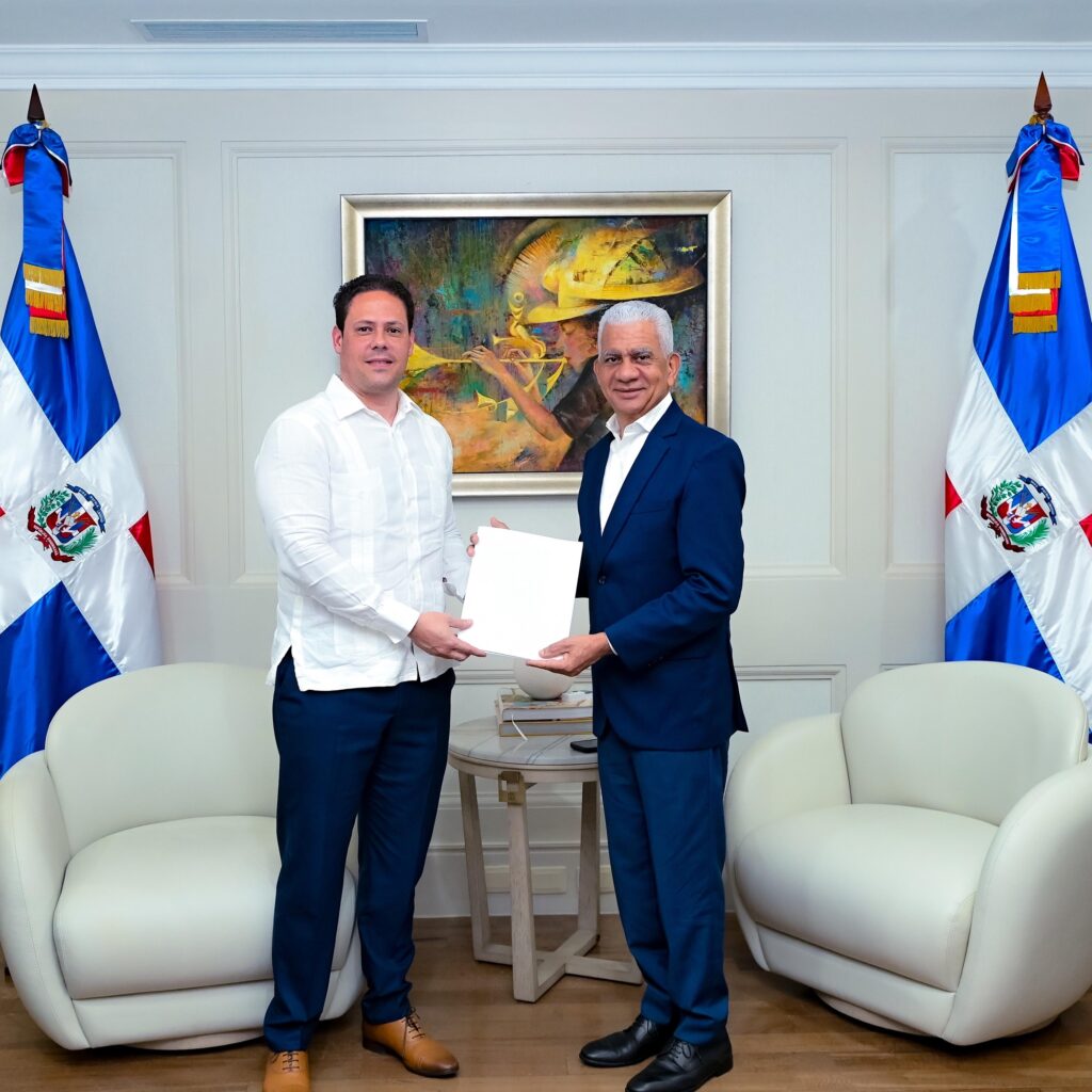 Santo Domingo. – El presidente del Senado de la República, Ricardo de los Santos, recibió por parte del Poder Ejecutivo, en una visita que giró el ministro de Vivienda y Edificaciones (MIVED), Carlos Bonilla, el anteproyecto que modifica la Ley 160-21 que crea el Ministerio de Vivienda, Hábitat y Edificaciones.