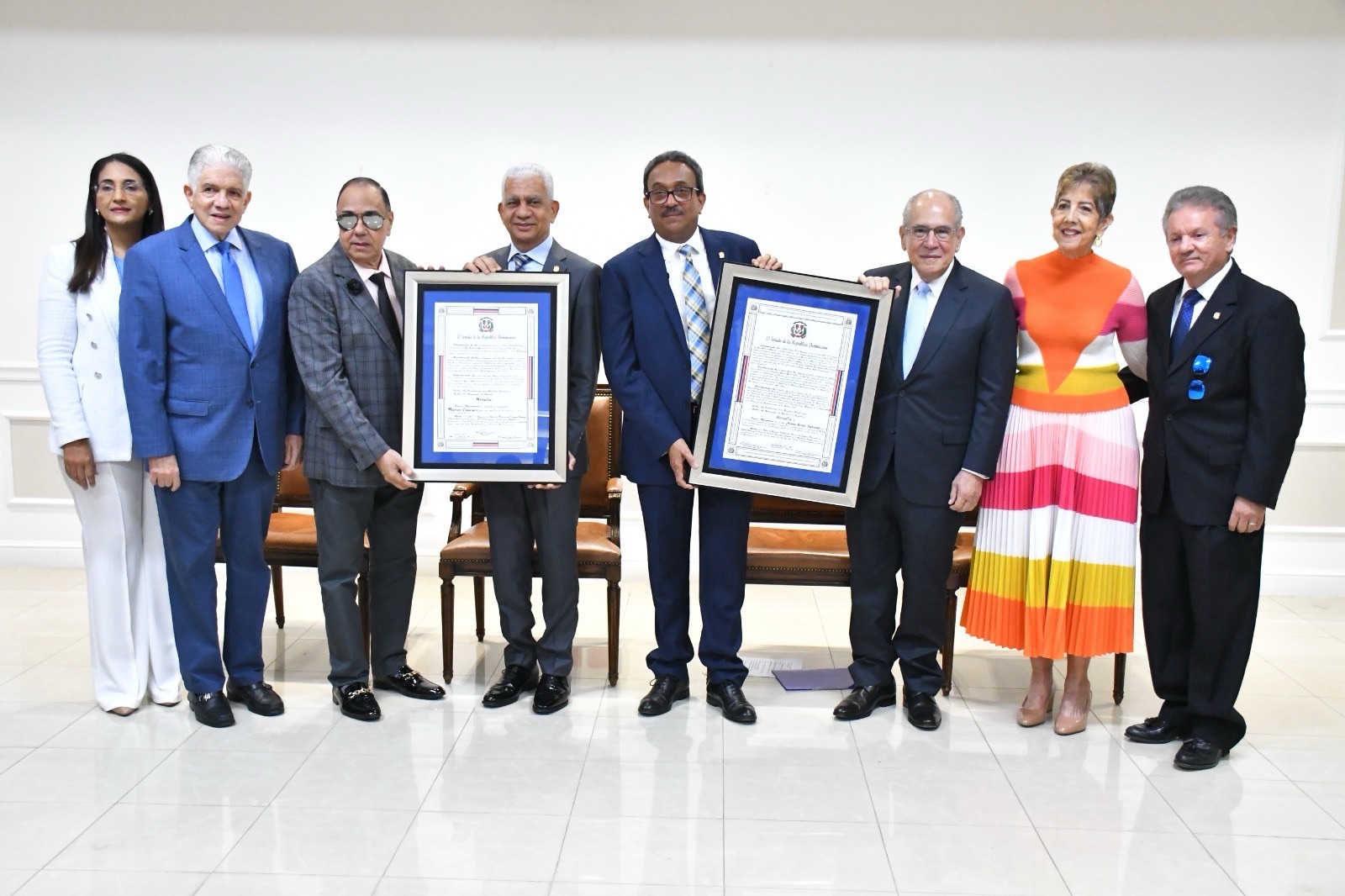 SANTO DOMINGO. – En un acto conjunto, el Senado de la República reconoció al doctor Jesús Feris Iglesias, por su trayectoria académica y profesional al servicio del Estado, y su dedicación a la infectología pediátrica en beneficio de la salud de los dominicanos; así como también al cantante y compositor, Marcos Caminero, por sus aportes a la música y a la cultura nacional.