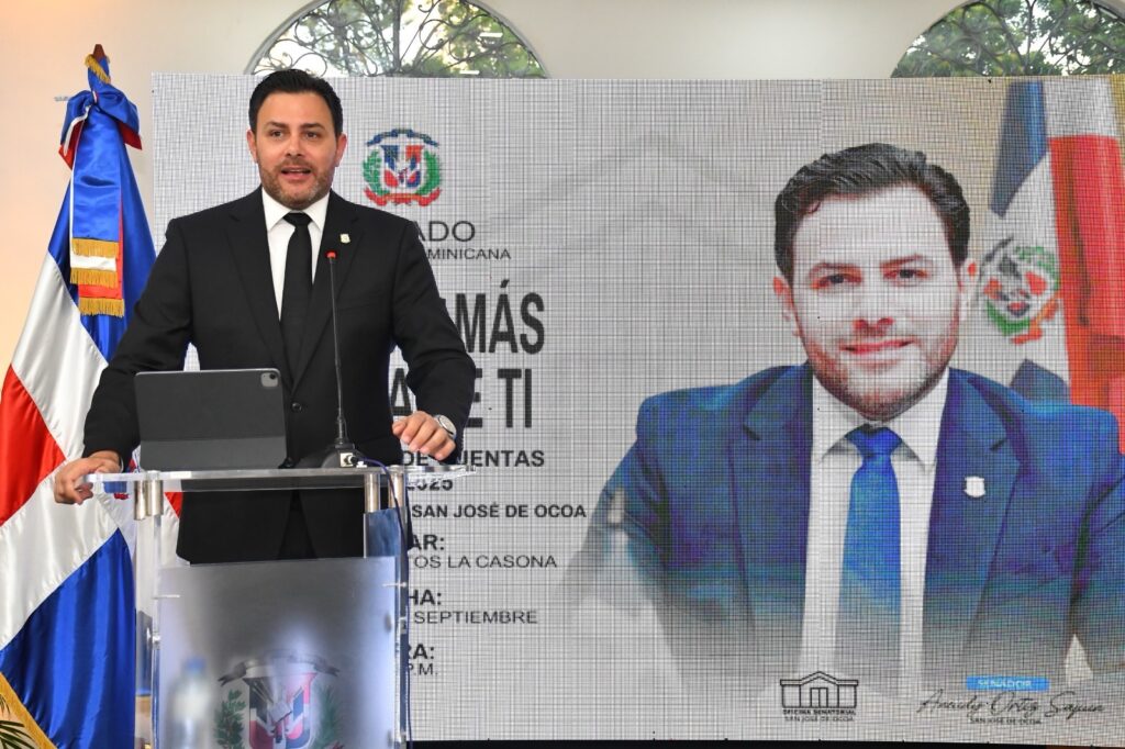 SAN JOSE DE OCOA.– El senador de San José de Ocoa, Aneudy Ortiz Sajiun, presentó este viernes sus logros y desafíos en la rendición de cuentas correspondiente al periodo 2024-2025, en la que destacó las iniciativas legislativas que ha sometido y una amplia lista de obras sociales ejecutadas en beneficio de su provincia.