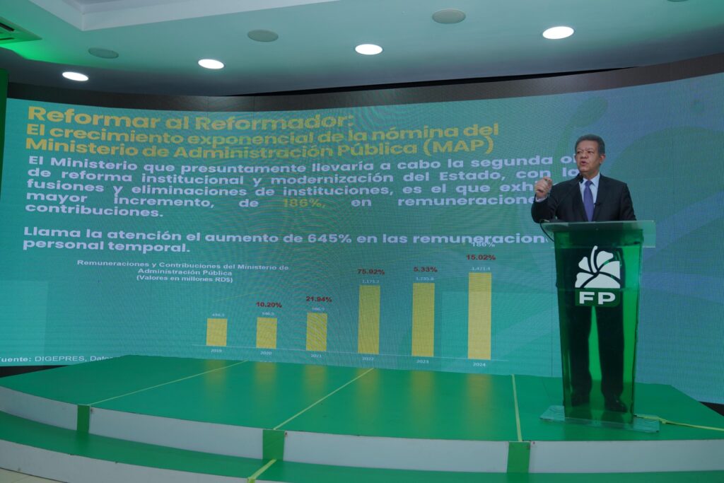 En su exposición, el líder político también hizo hincapié en el aumento desproporcionado del gasto público bajo la administración del PRM. Entre 2019 y 2024, el gasto público se incrementó en RD$674,419.4 millones, lo que representa un crecimiento del 90.6%, casi duplicando el monto inicial.