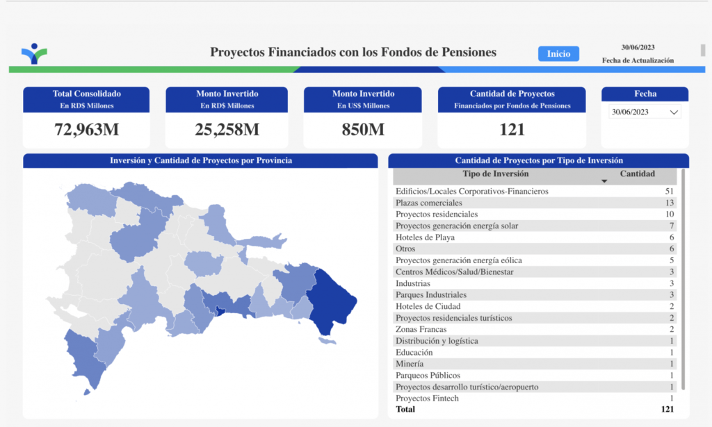 Santo Domingo, Rep. Dom.- La Superintendencia de Pensiones (Sipen) informa que ha puesto a disposición del público en general un mapa interactivo mediante el cual se pueden observar los sectores impactados a través de la inversión de los fondos de pensiones en cuotas de fondos de inversión.