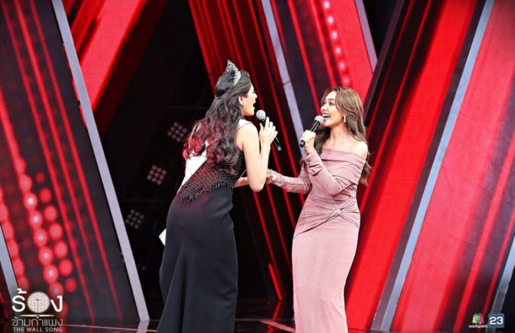 Sheynnis, Miss Universo 2023, llegó sorprendiendo a todos en el exitoso programa “The Wall Song”, un espectáculo de música tailandés donde los invitados famosos cantan duetos con invitados escondidos al otro lado de una pared, mientras los cantantes deben adivinar la identidad de una súper estrella oculta que canta a dúo con ellos.