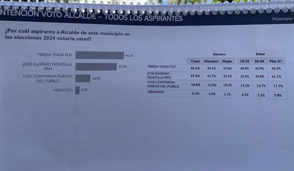 También la candidata alcaldesa presentó la última encuesta de trabajo realizada en fecha del 2 al 5 de febrero, en entrevistas Cara a Cara en Hogares cotuisanos con un Tamaño de 800 muestras presentando los siguientes resultados: