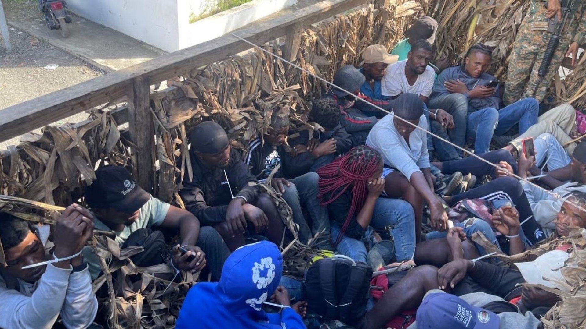 Santiago. – Miembros del Ejército de la República Dominicana interceptaron a 24 ciudadanos haitianos en situación migratoria irregular, quienes eran transportados ocultos en la cama de un camión en la avenida Doctor Joaquín Balaguer, en Santiago. El conductor del vehículo, un camión Daihatsu de color azul, huyó al percatarse de la presencia militar, dejando abandonado al grupo.