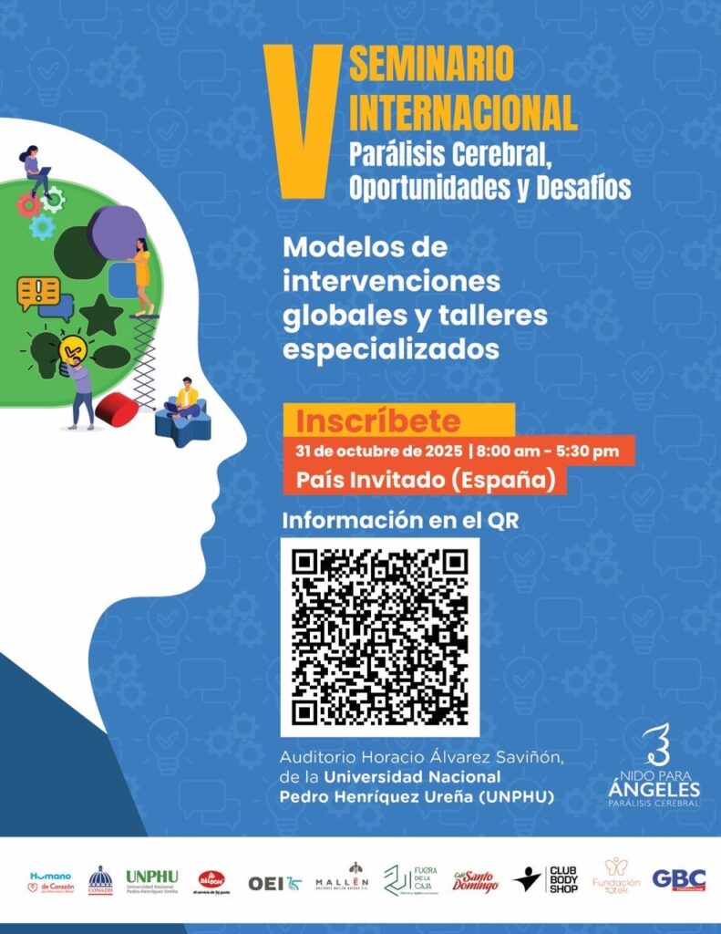 La fundación Nido Para Ángeles invita a profesionales, instituciones, familias y público interesado a participar en la quinta edición del “Seminario Internacional Parálisis Cerebral: Oportunidades y Desafíos”, que se celebrará el próximo viernes 31 de octubre de 2025, en el Auditorio Horacio Álvarez Saviñón de la Universidad Nacional Pedro Henríquez Ureña (UNPHU), de 8:00 de la mañana hasta las 5:00 pm.
