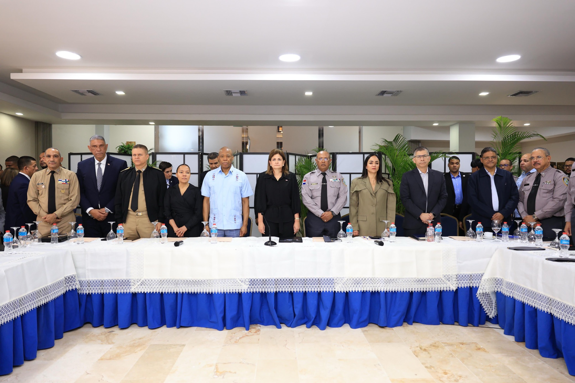 José Manuel Cabrera Ulloa, director de la DNCD; y también la fiscal titular del Distrito Nacional, Rosalba Ramos, directores centrales, de área y regionales; representantes de operaciones de las fuerzas armadas; representantes del INTRANT, así como fiscales de todo el país.