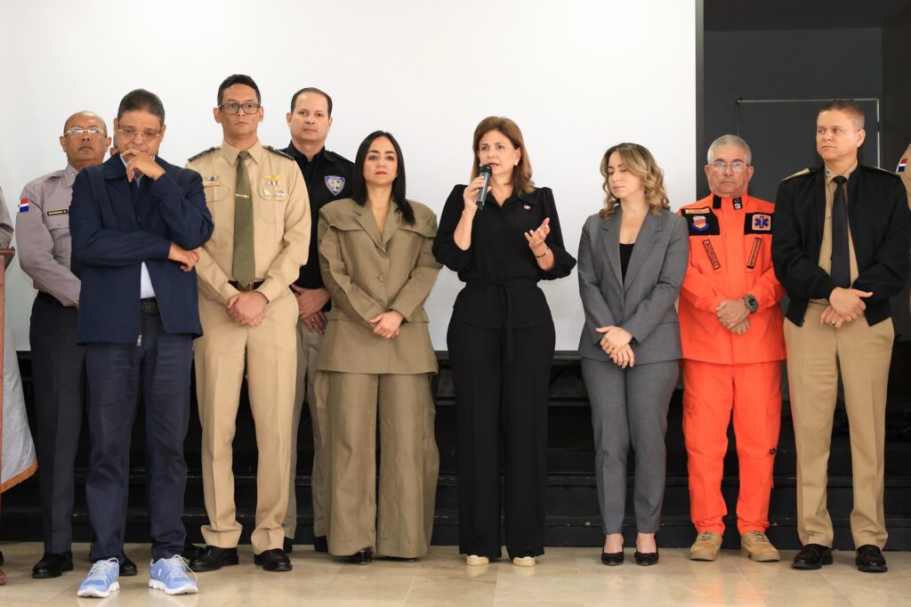 A la vicemandataria le acompañan el alcalde de Nueva York, Erick Adams; la ministra de Interior y Policía, Faride Raful; el director de la Policía Nacional, el mayor general Ramón Antonio Guzmán Peralta, la procuradora general de la República, Yeni Berenice Reynoso y el director del Centro de Operaciones de Emergencias, el general Juan Manuel Méndez.