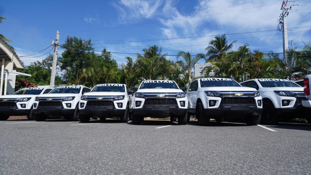 Las camionetas son automáticas, año 2024 de marca Chevrolet, doble cabina 4×4, disel, y un seguro full de Banreservas.