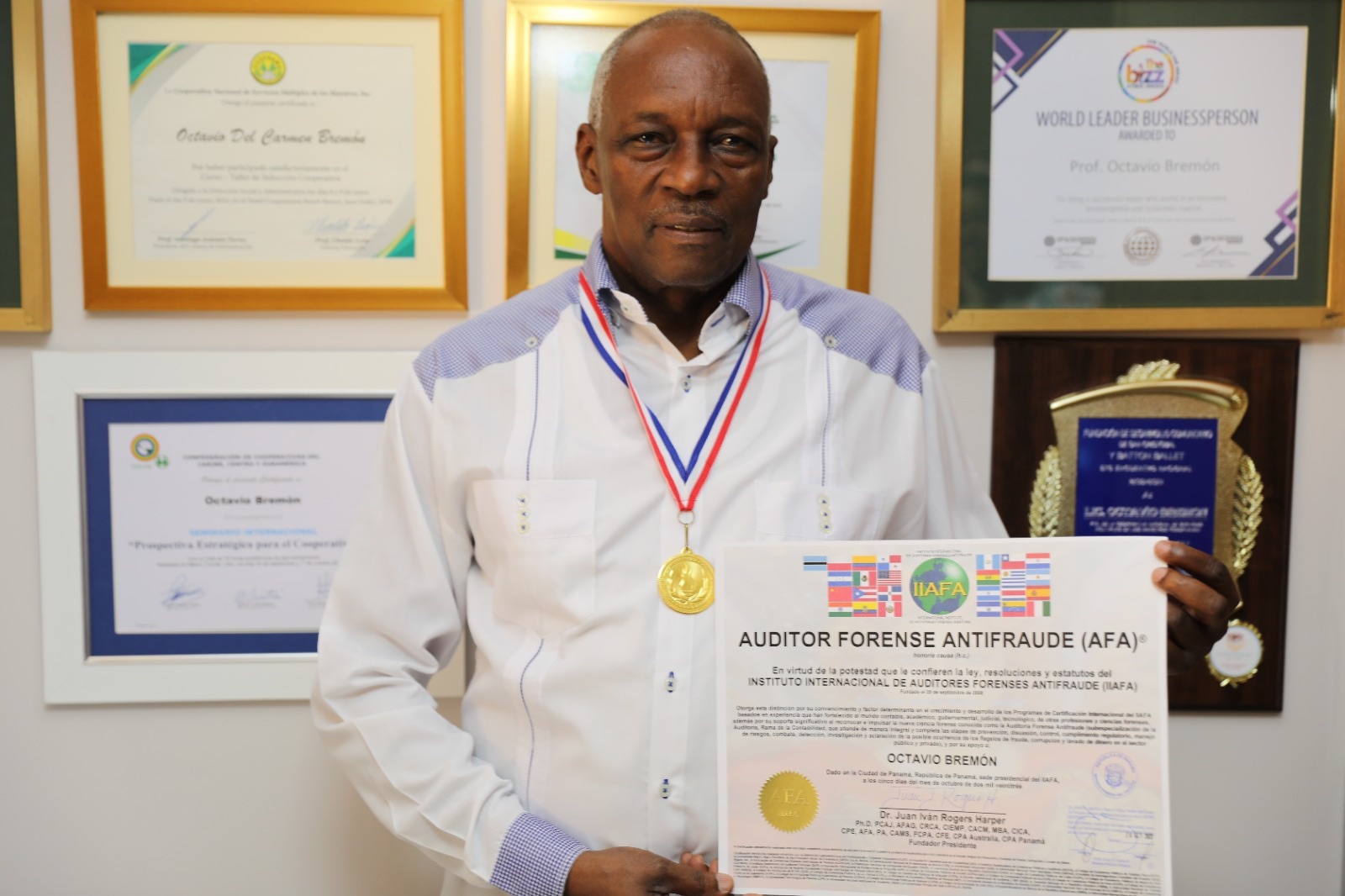 El vicepresidente del Consejo de Administración de la Cooperativa Nacional de Servicios Múltiples de los Maestros (COOPNAMA), Prof, Octavio Bremón, recibió la Certificación Internacional de Auditoria Forense Antifraude (AFA), por parte del Instituto Internacional de Auditores Forenses Antifraude (IIAFA).